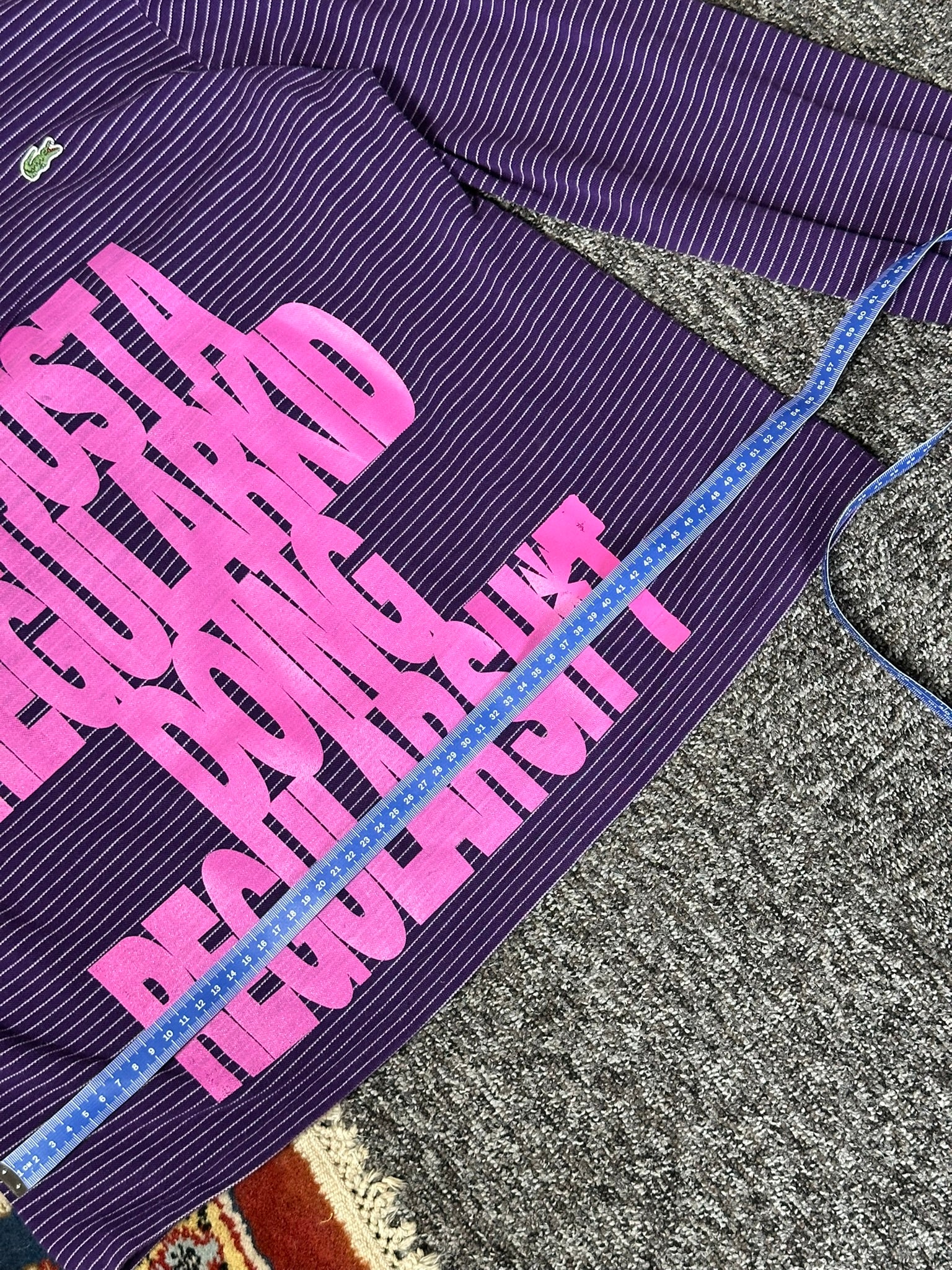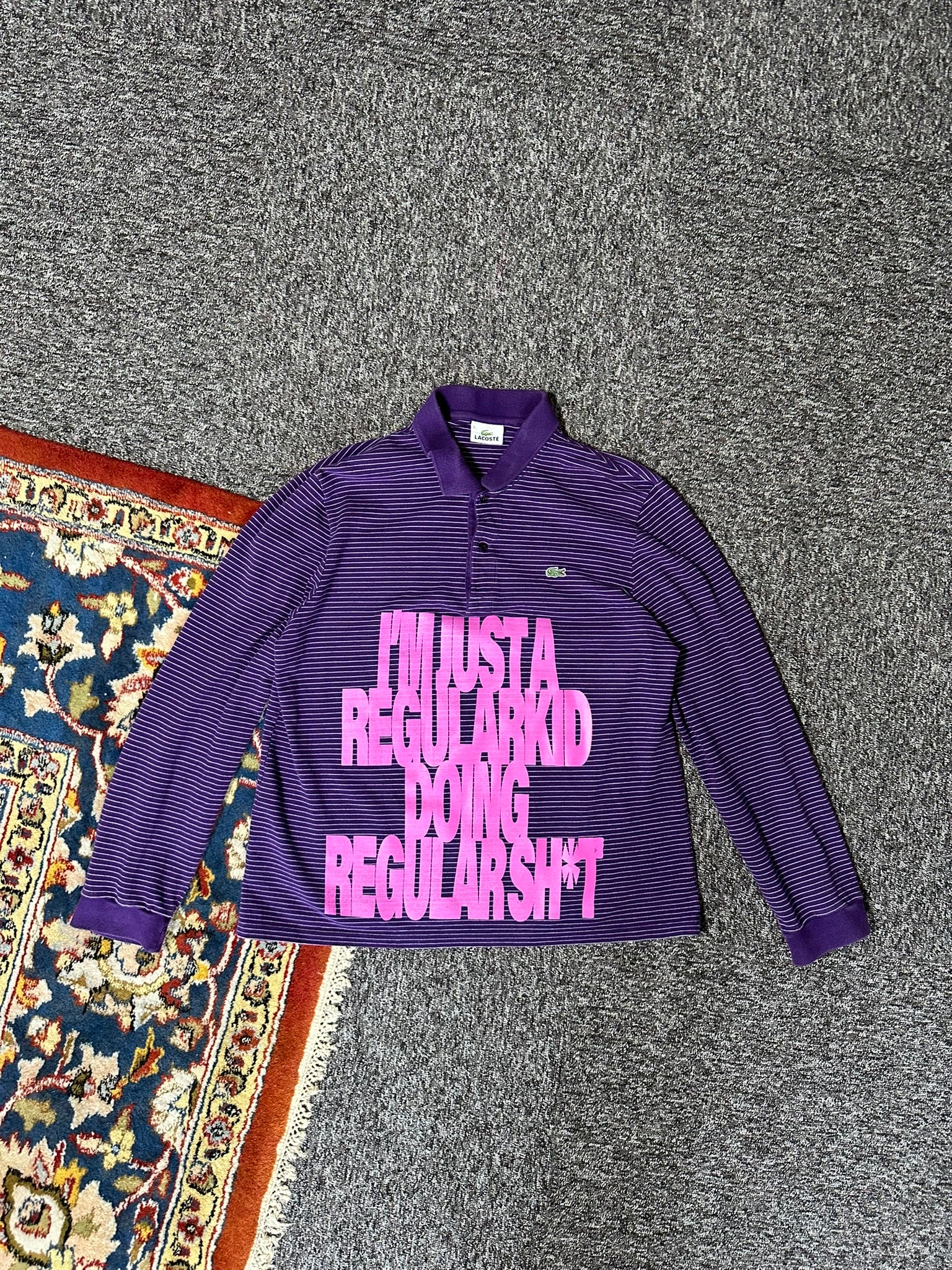 Ce polo a été acheté en seconde main puis customisé en sérigraphie avec de l'encre plastisol