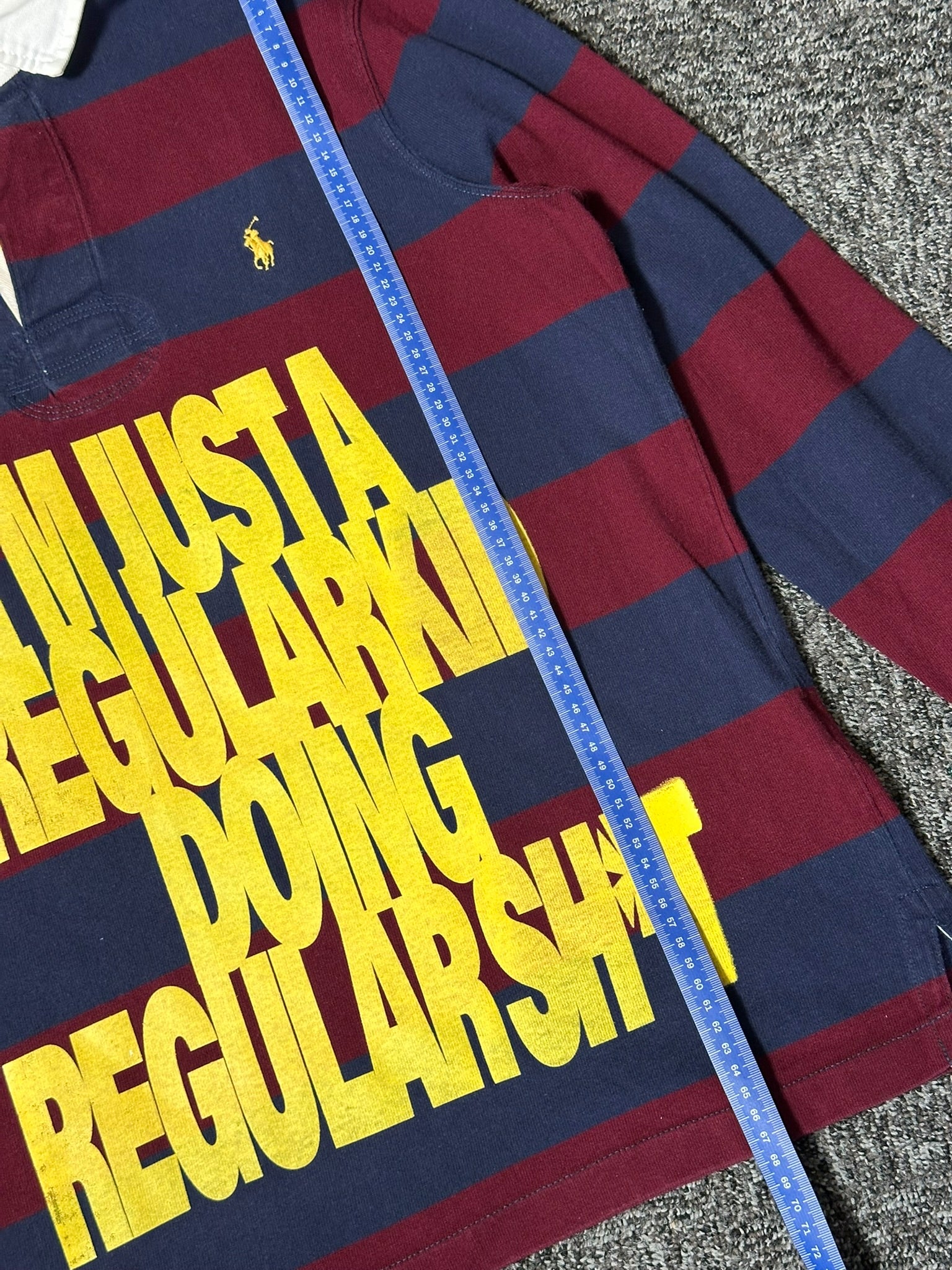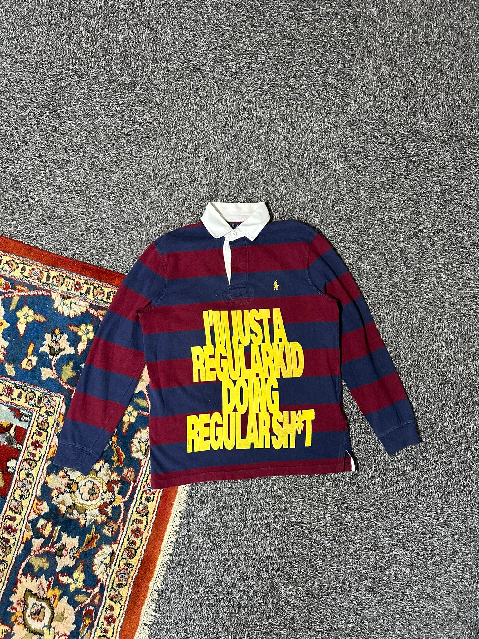 Ce polo a été acheté en seconde main puis customisé en sérigraphie avec de l'encre plastisol
