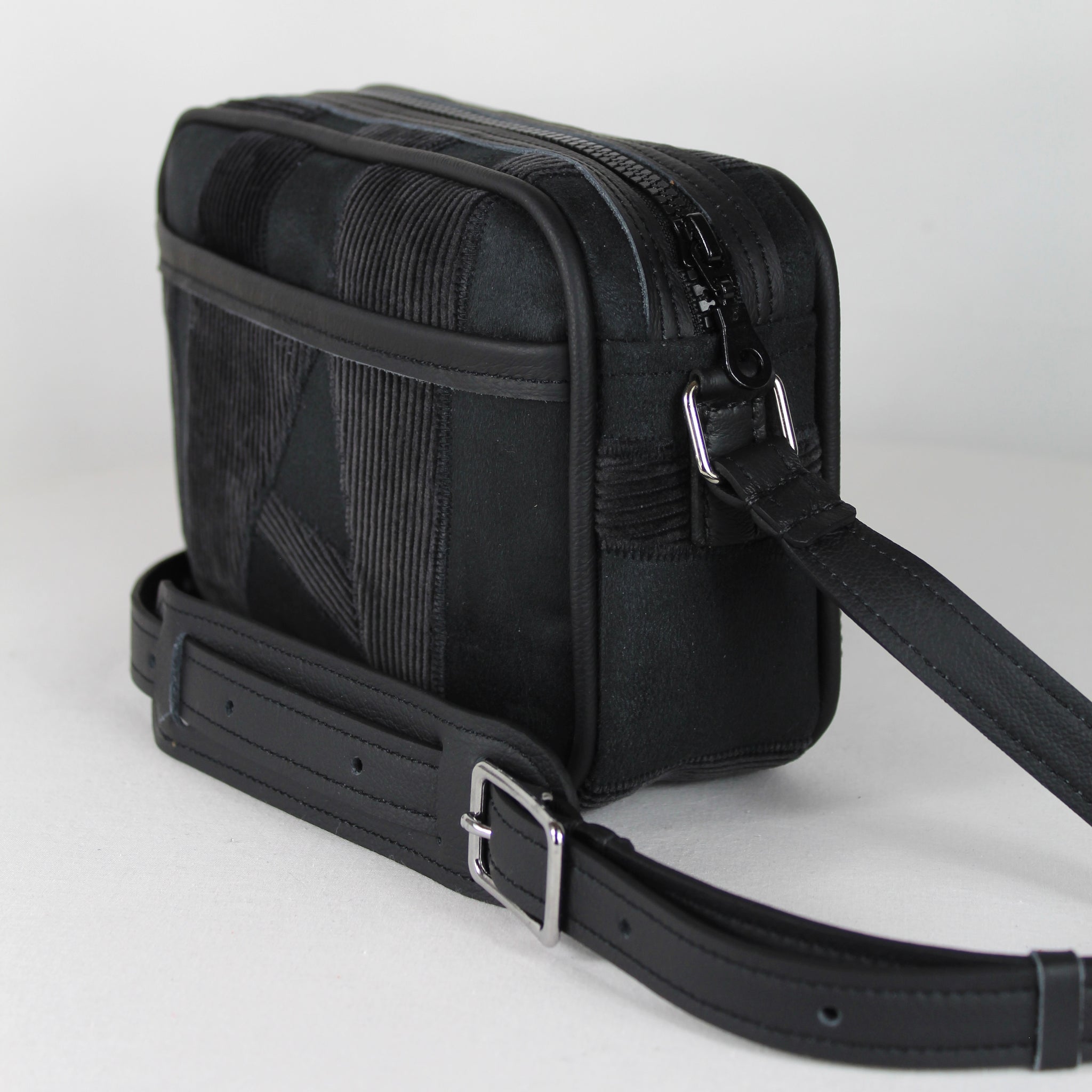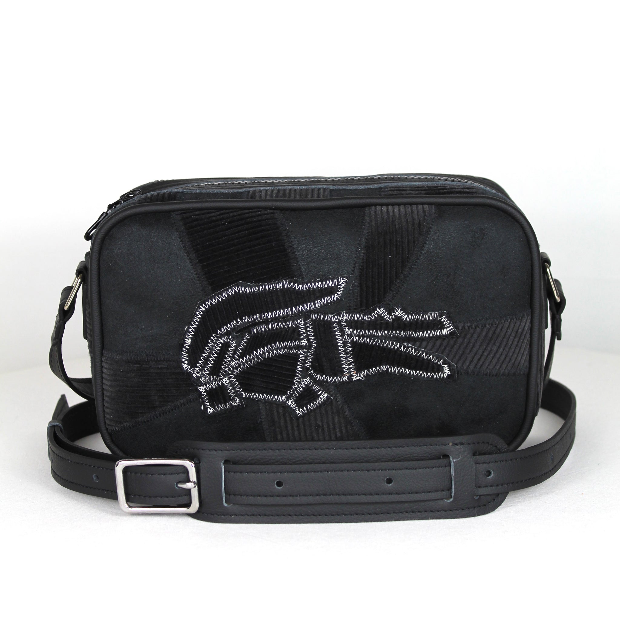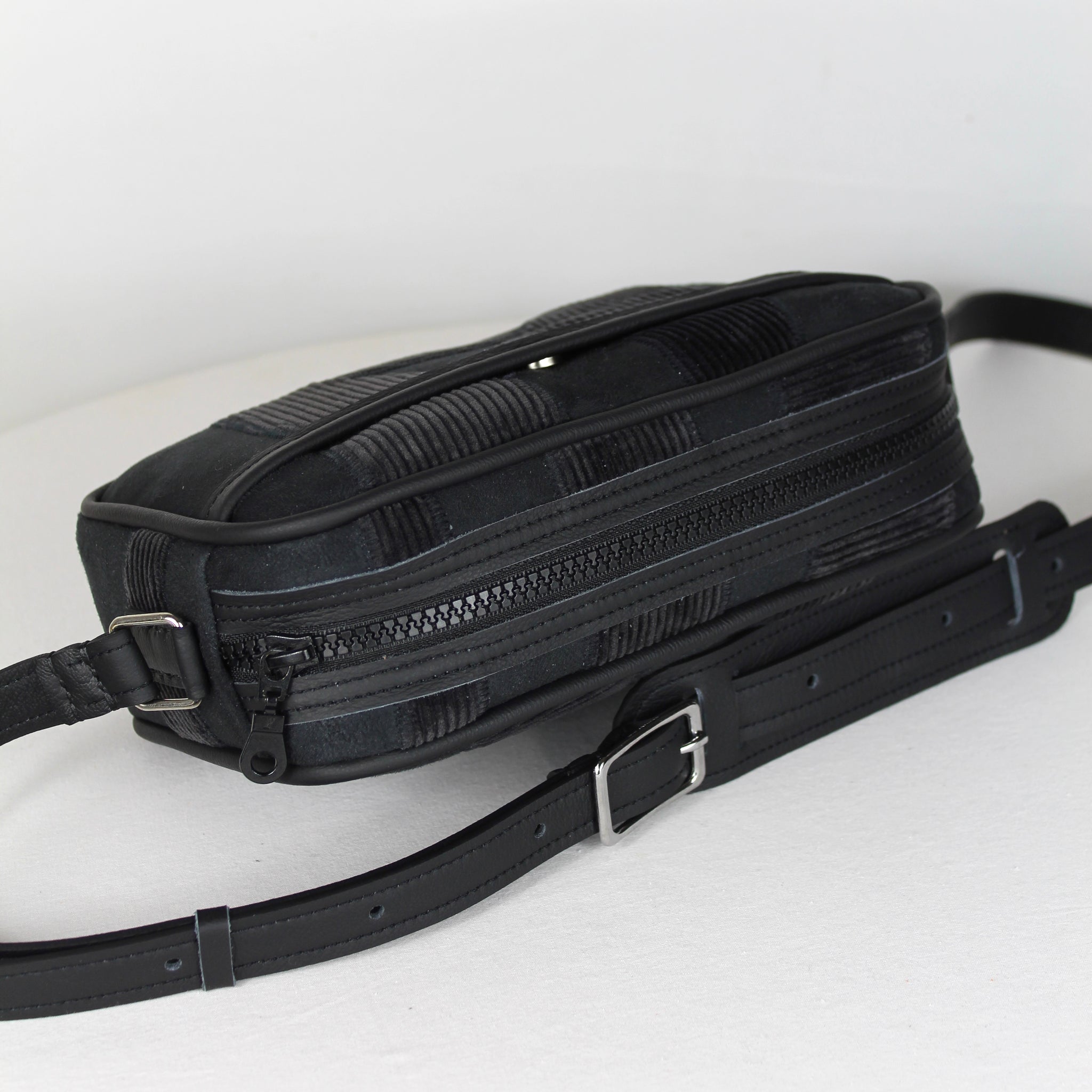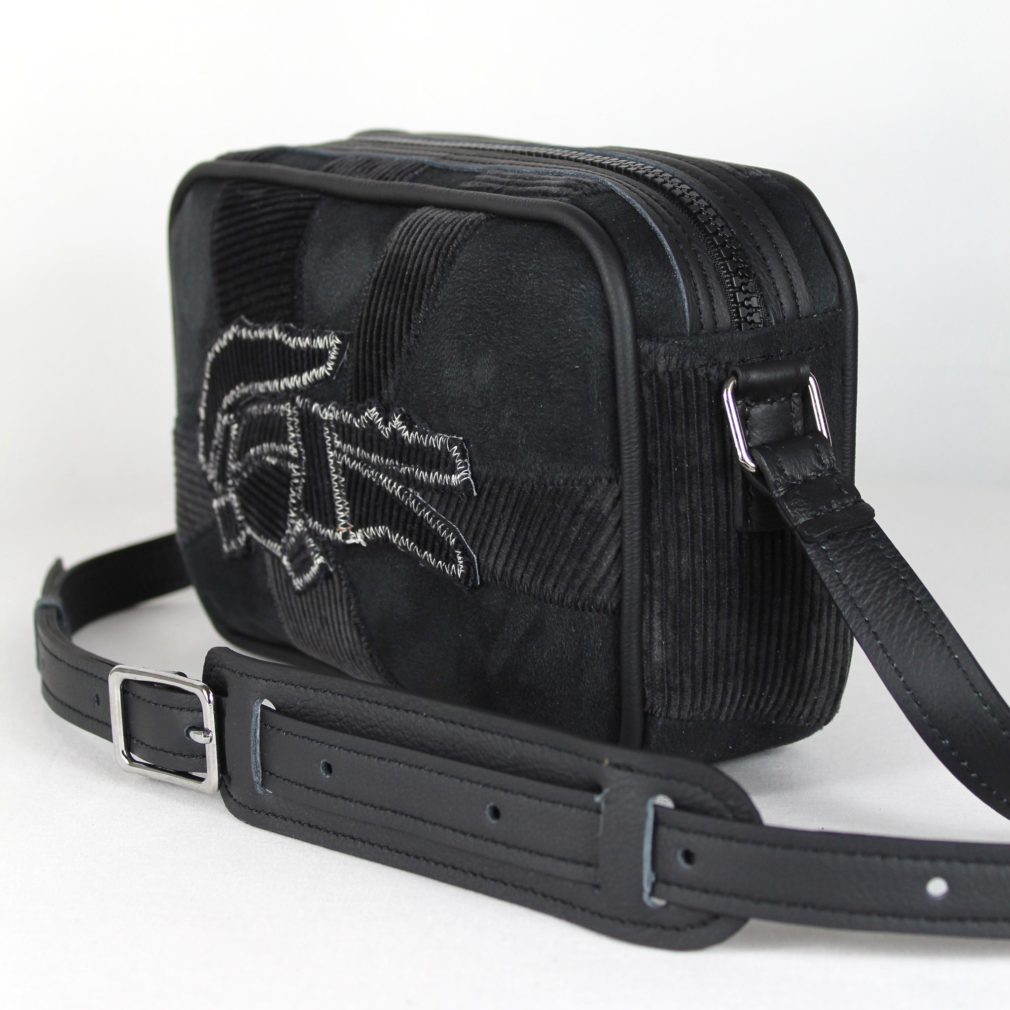 ATTENTION : Le placement des empiècements en velours côtelé peuvent légèrement être différents que sur la photo ! Chaque montage est propre à sa sacoche et peut varier.